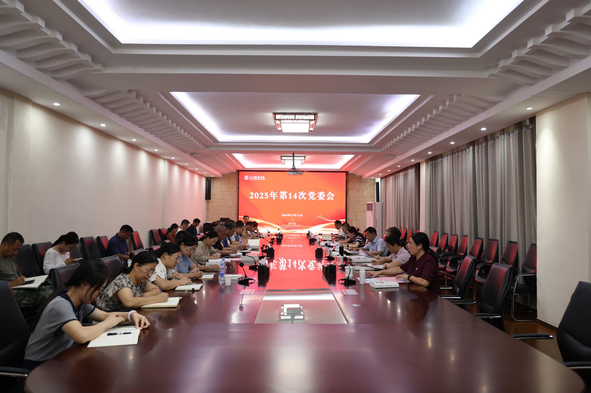 新闻中心讯(文/龙瑞行 图/徐志勇)10月11日上午,我校召开2025年第14次党委会专题学习会,传达学习习近平总书记近期重要讲话重要指示精神,研究我校贯彻落实意见。校党委书记林井萍主持会议。