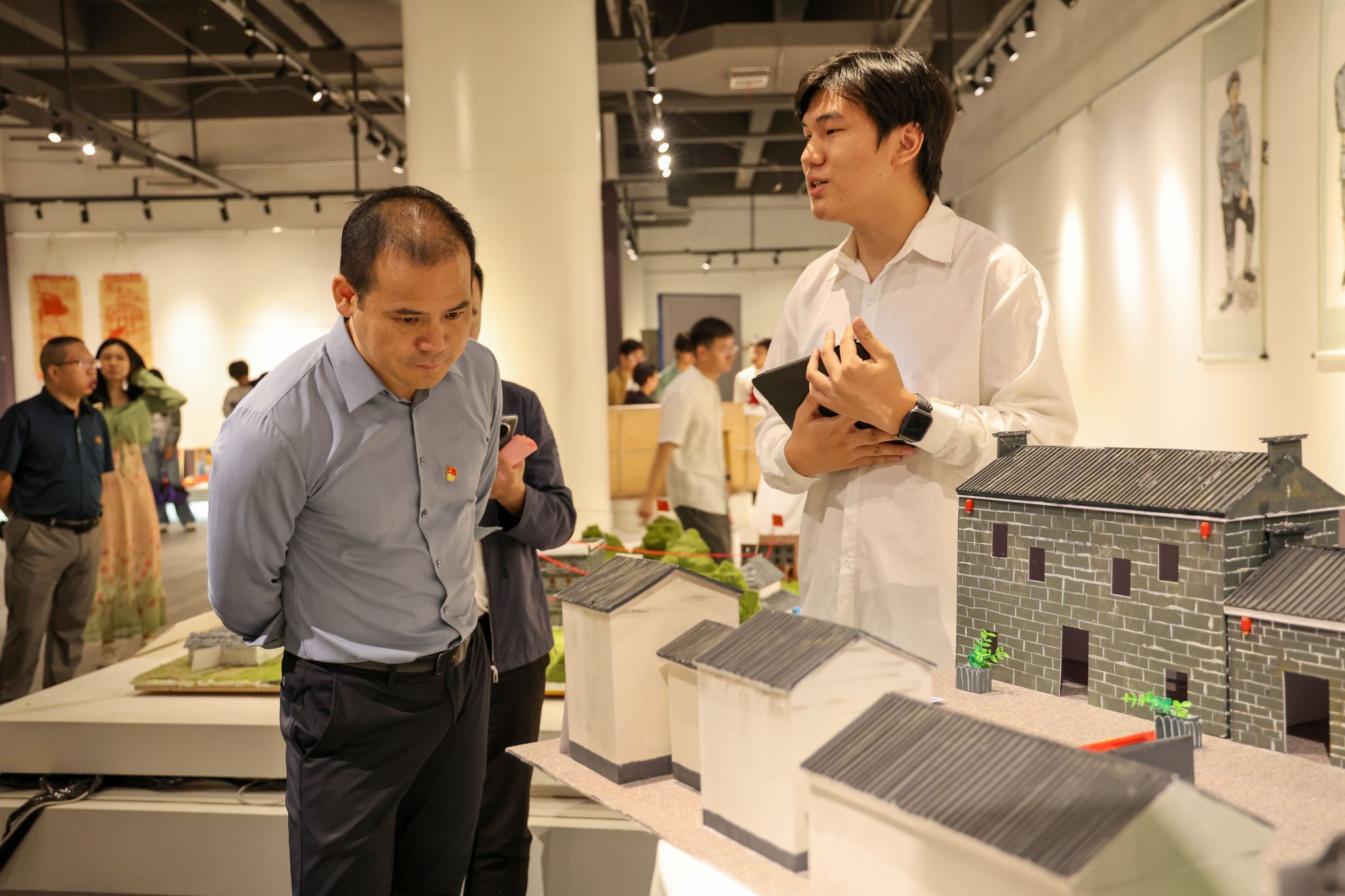 党委副书记唐新强宣布2025年江西服装学院暑期社会实践成果暨第三届“红色走读”作品展开幕。与会嘉宾及师生代表移步展厅参观了展览。