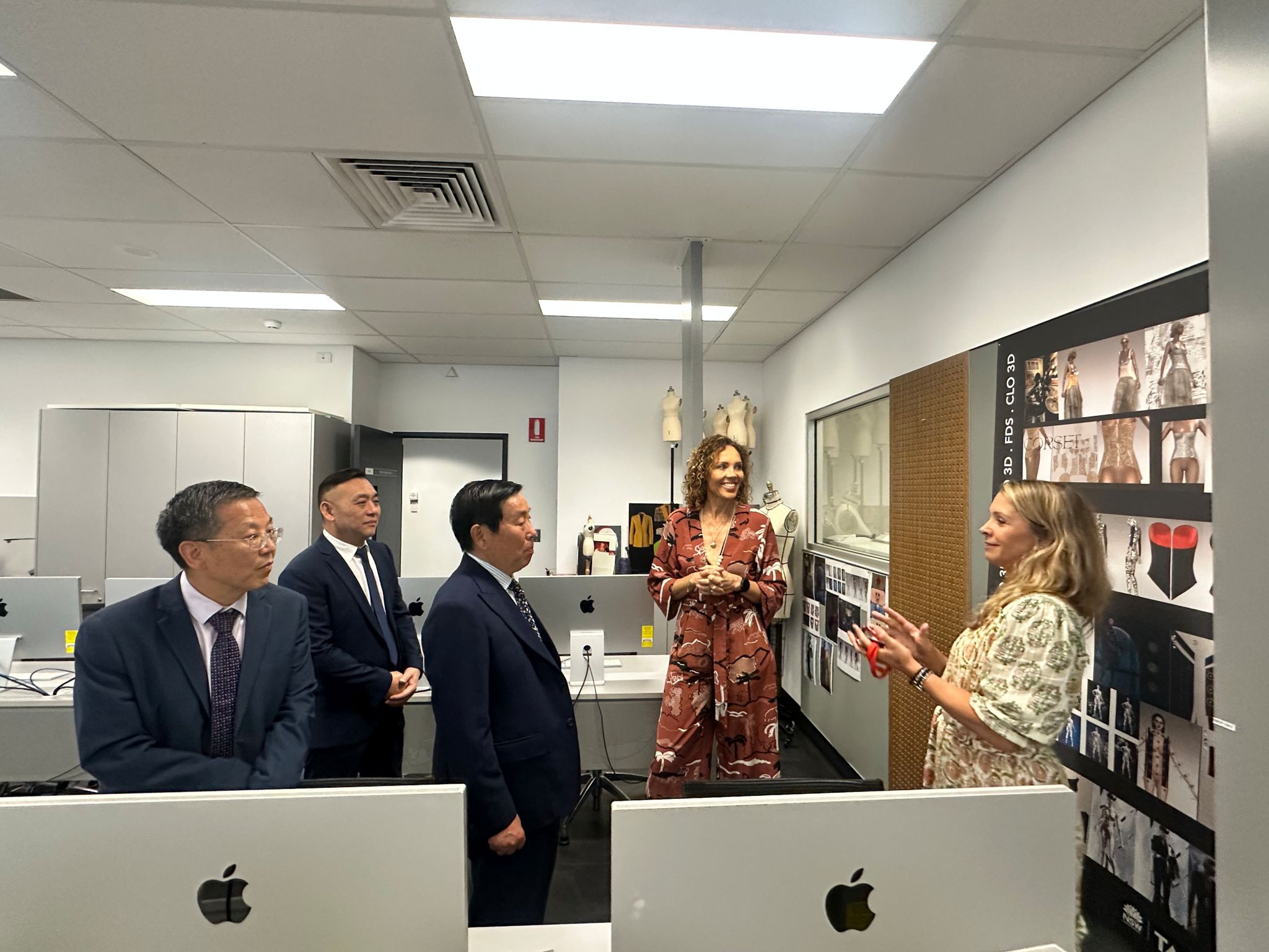 在悉尼,代表团访问新南威尔士州政府技术与继续教育学院时装设计教学中心(TAFE NSW FDS),与学院相关负责人就实践导向教学模式、学生实习与技能培养以及国际合作路径进行了交流,深入了解其产教融合和行业协同育人的办学经验。