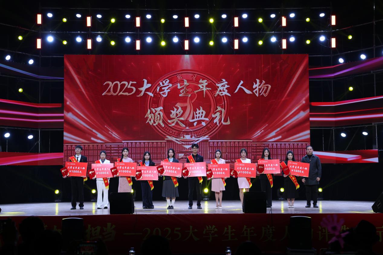 新闻中心讯(文/樊翔 图/颜涛 古明希)2025年12月29日晚,江西服装学院2025大学生年度人物评选决赛暨颁奖典礼在霓裳宫举行,校党委副书记唐新强、副校长贾丽霞、校长助理易城等在家校领导出席活动。活动邀请了党委组织部部长陈翠娥、党委宣传部部长沈新建、校团委书记孟安然、学工处副处长侯娜娜、教务处王龙锋教授担任评委,经过15位候选人的精彩答辩与评委评审,江西服装学院2025大学生年度人物正式揭晓!