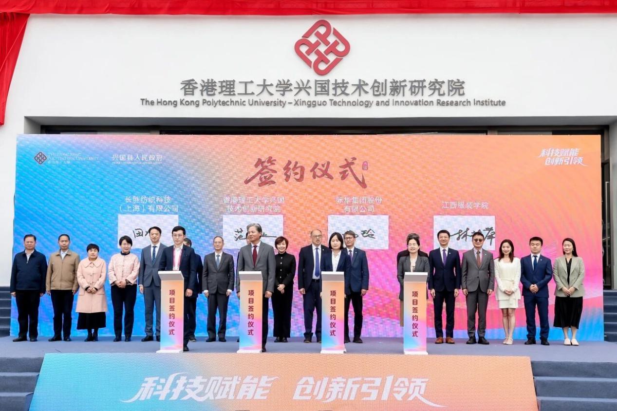 新闻中心讯(供稿/科技产业处)2026年3月19日,香港理工大学兴国技术创新研究院揭牌仪式在江西兴国举行。我校党委书记林井萍代表江西服装学院与香港理工大学兴国技术创新研究院签署战略合作协议书,陈东生教授、科技产业处副处长黄伟随同出席。