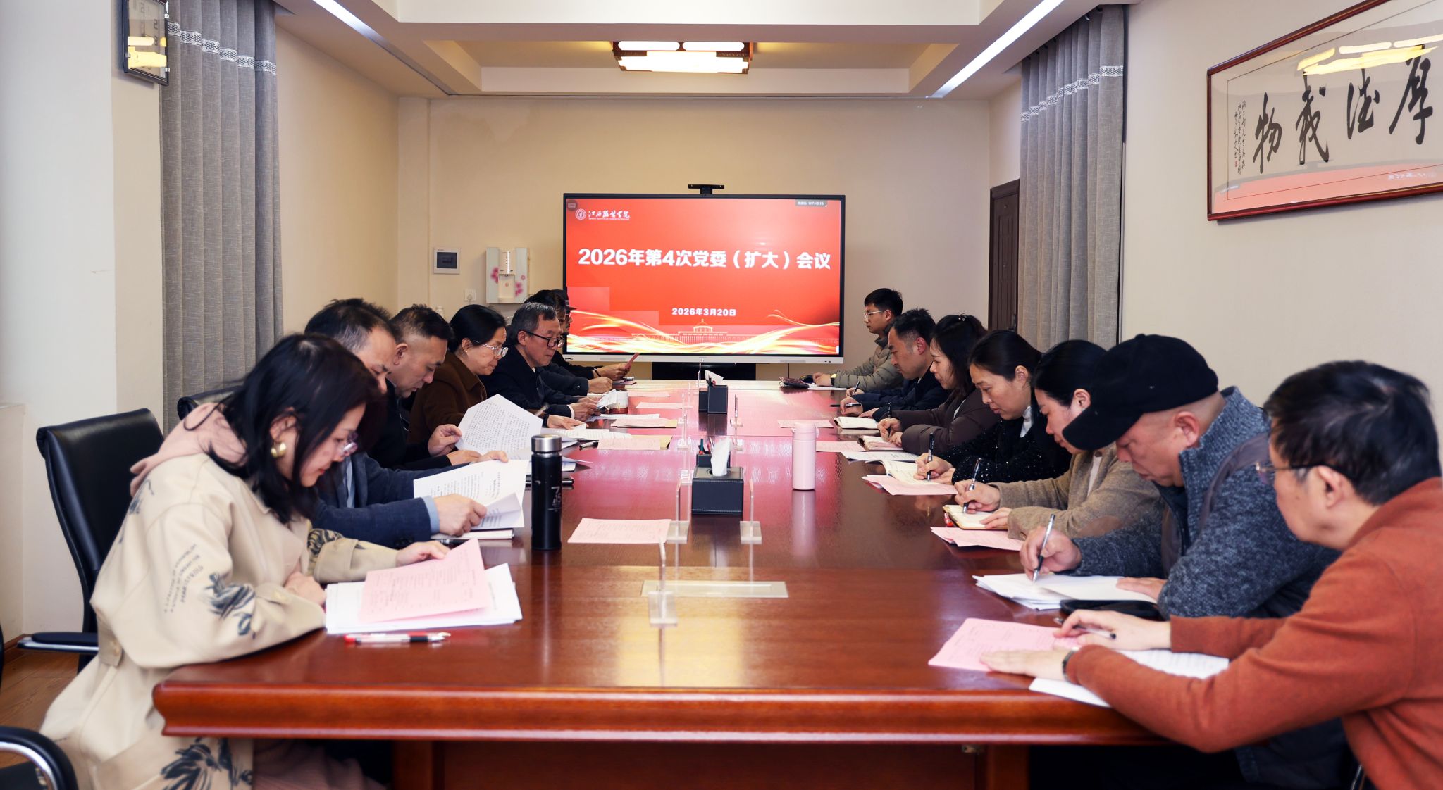 新闻中心讯(文/龙瑞行 图/徐志勇)3月20日,我校召开2026年第4次党委会专题学习会,传达学习习近平总书记近期重要讲话和重要指示精神,研究我校贯彻落实意见。校党委书记林井萍主持会议。