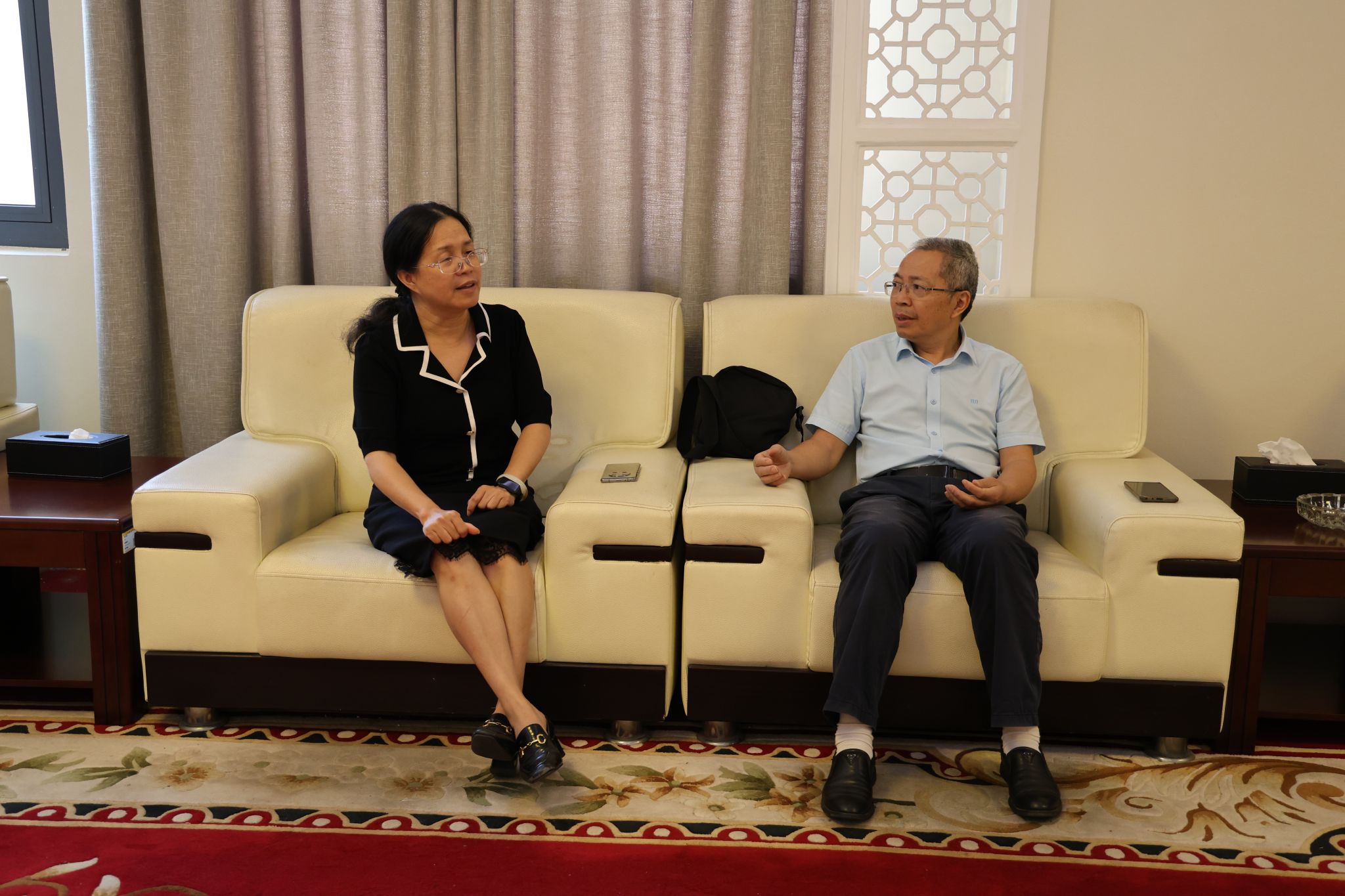 校党委书记林井萍、党委副书记唐新强分别与王员教授进行深入沟通交流,围绕进一步加强校际思政工作合作、深化思政精品项目建设等话题交换意见,为后续学校思政工作高质量发展凝聚更多智慧与力量。
