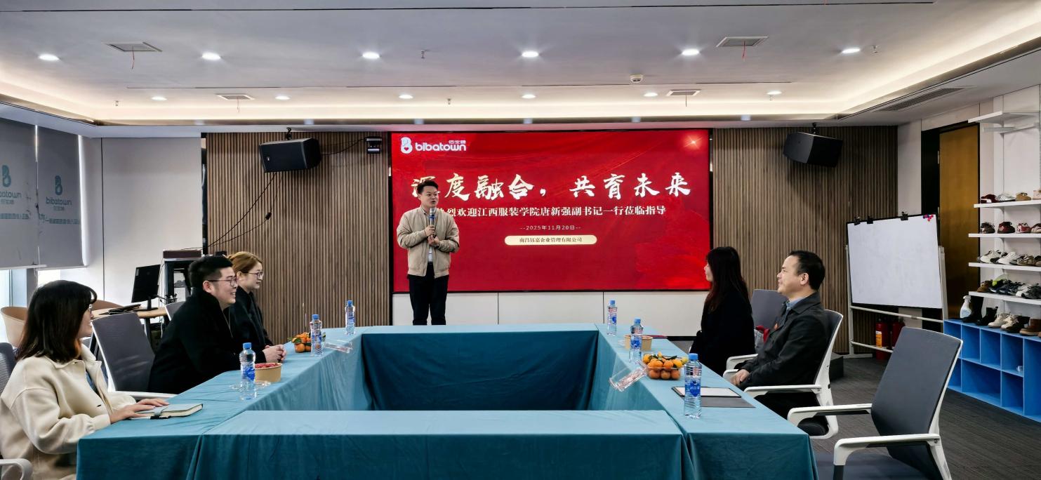 新闻中心讯(供稿/就业处)为深入贯彻落实国家“十五五”规划开局之年对应用型高校教育与产业融合发展的新要求,积极响应江西省“1269”行动计划,精准对接南昌区域经济发展与服装产业转型升级需求,11月20日,学校党委副书记、监事长唐新强带领就业处相关工作人员,赴南昌钰嘉管理有限公司旗下童装品牌“佰宝糖”进行“访企拓岗”专项调研。企业总裁彭宽、人力总监陈娇、零支经理刘佳(2008级江服校友)及行政经理刘寒松等参与接待,双方围绕人才共育、产教协同、实习就业等议题展开深入交流,共同探索校企合作新模式。