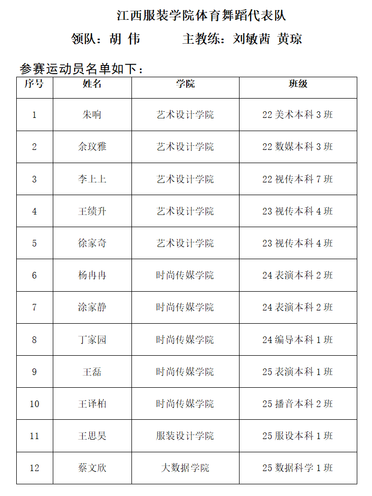 江西服装学院体育舞蹈队参赛队员