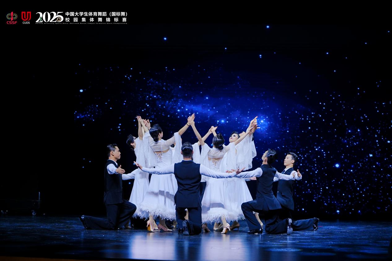 在华尔兹项目中,我校学子步伐流畅、起伏有序,以优雅从容的舞姿完美诠释了古典舞曲的抒情与浪漫;在维也纳华尔兹项目上,她们则展现了轻快灵动的旋转与饱满的热情,将节奏明快的旋律转化为翩跹的舞步。每一次精准的配合、每一个情感的传递,不仅是技艺的展示,更是日常刻苦训练的成果凝结,赢得了现场评委与观众的广泛认可。