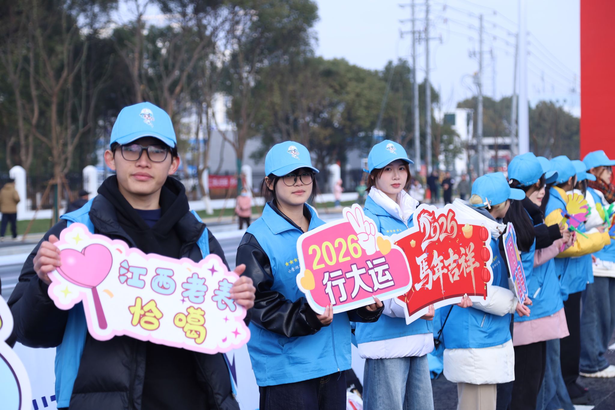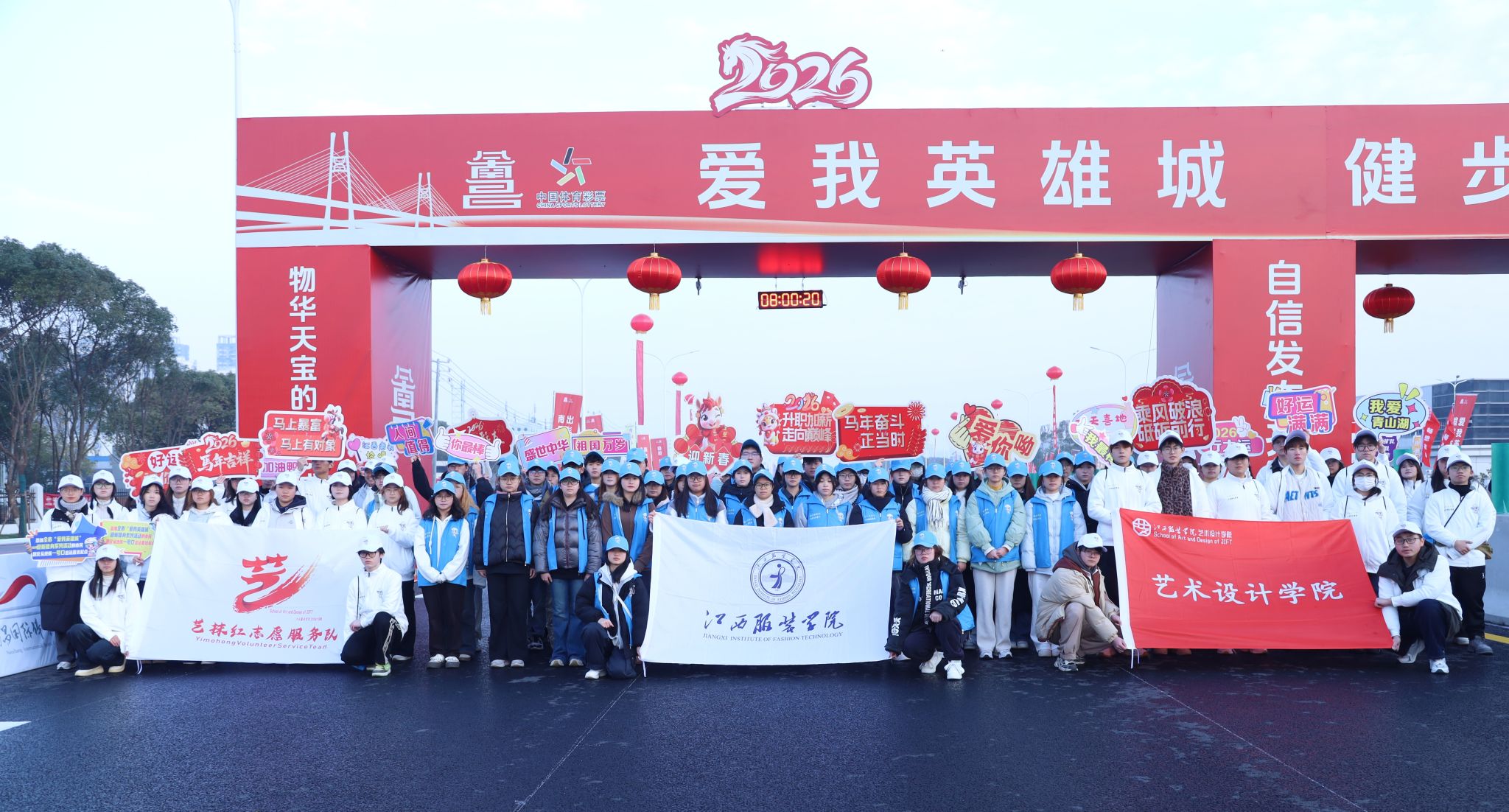新闻中心讯(素材供稿/艺术设计学院)一元复始,万象更新。2026年1月3日上午,冬日暖阳映照下,由南昌市人民政府、赣江新区管委会联合主办的“爱我英雄城 健步隆兴桥”活动在被誉为城市新地标的隆兴大桥上举行。当天,32.6万名市民群众汇集于此,一起健步隆兴大桥,共赏赣江两岸日新月异的城市风貌。江西服装学院积极响应号召,155名江服志愿者整装集结、奔赴现场,以饱满的热情、扎实的行动为活动保驾护航,用青春活力为新年增添亮色,充分展现了江服学子的责任与担当,也用实际行动践行学校公益性办学的初心使命。