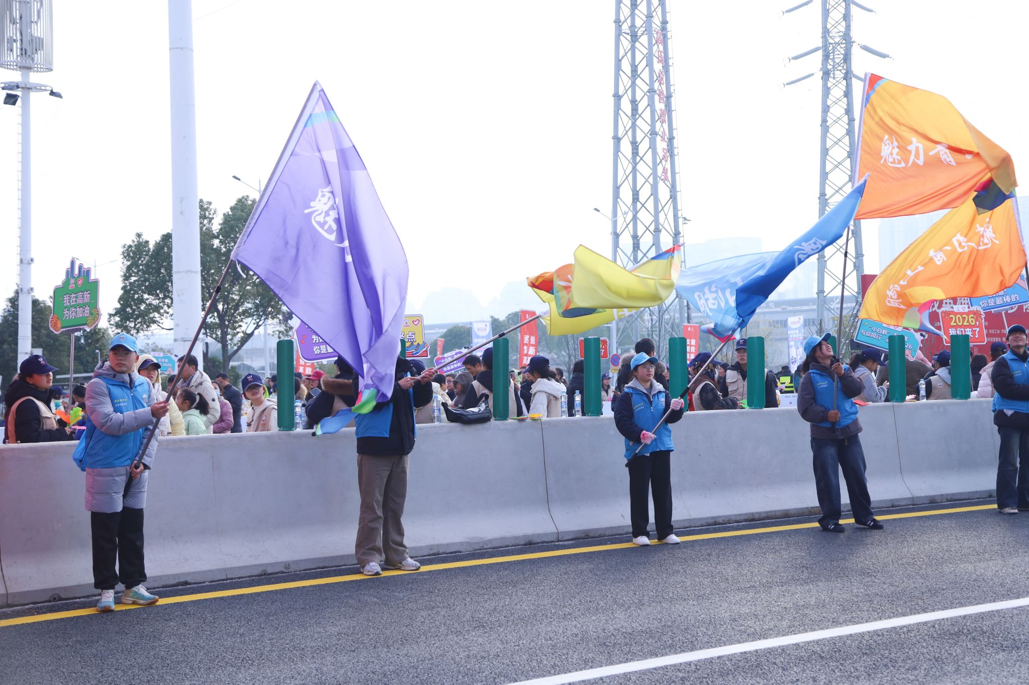 我们破晓集结,晨曦启程。我站在隆兴大桥的拱门处,迎着凛冽的寒风挥舞着旗帜,目光紧紧追随着健步队伍的方向。当浩浩荡荡的人群迈着矫健的步伐朝我走来,脸上洋溢着新年的喜悦与活力时,我忍不住跟着人群呐喊“加油”。手中的旗帜被风吹得猎猎作响,但看着大家热情高涨的模样,心里的暖意驱散了所有寒意。能以这样的方式参与到“爱我英雄城”的活动中,用志愿热情点亮新年的开端,我满是自豪。