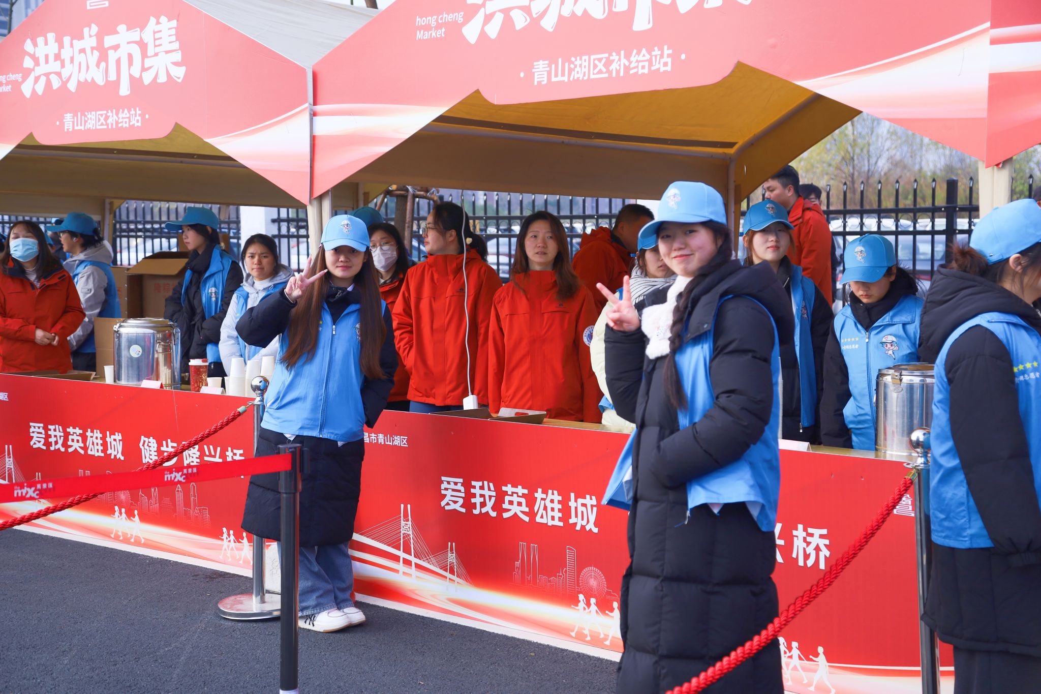 活动现场,我校志愿者们经过前期统筹安排,划分为多个专项工作小组,各司其职、协同联动,成为隆兴大桥上一道靓丽的风景线。路线指引与帮扶组志愿者穿梭在健步队伍前后,耐心为参与者答疑解惑、指引方向,及时提供贴心帮扶;呐喊助威组手持彩旗,以嘹亮的口号、热情的欢呼为健步者加油鼓劲,让活动现场始终洋溢着昂扬向上、喜迎新年的浓厚氛围。在公益集市区域,补给驿站人头攒动,江服志愿者们主动承担秩序维护与环境保洁工作,引导市民有序参与集市活动,俯身捡拾垃圾杂物,确保公益集市热闹有序、整洁文明。与此同时,地铁站疏导组志愿者坚守岗位,精准引导人流有序进出;现场秩序维护组志愿者穿梭在活动沿线,密切关注现场情况,及时化解各类突发问题;宣传组志愿者手持相机,敏锐捕捉活动中的暖心瞬间与志愿风采,用镜头定格这场充满活力与温情的新年盛会。