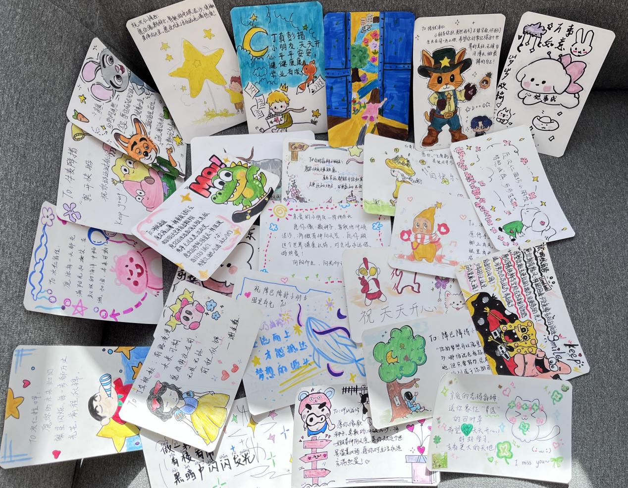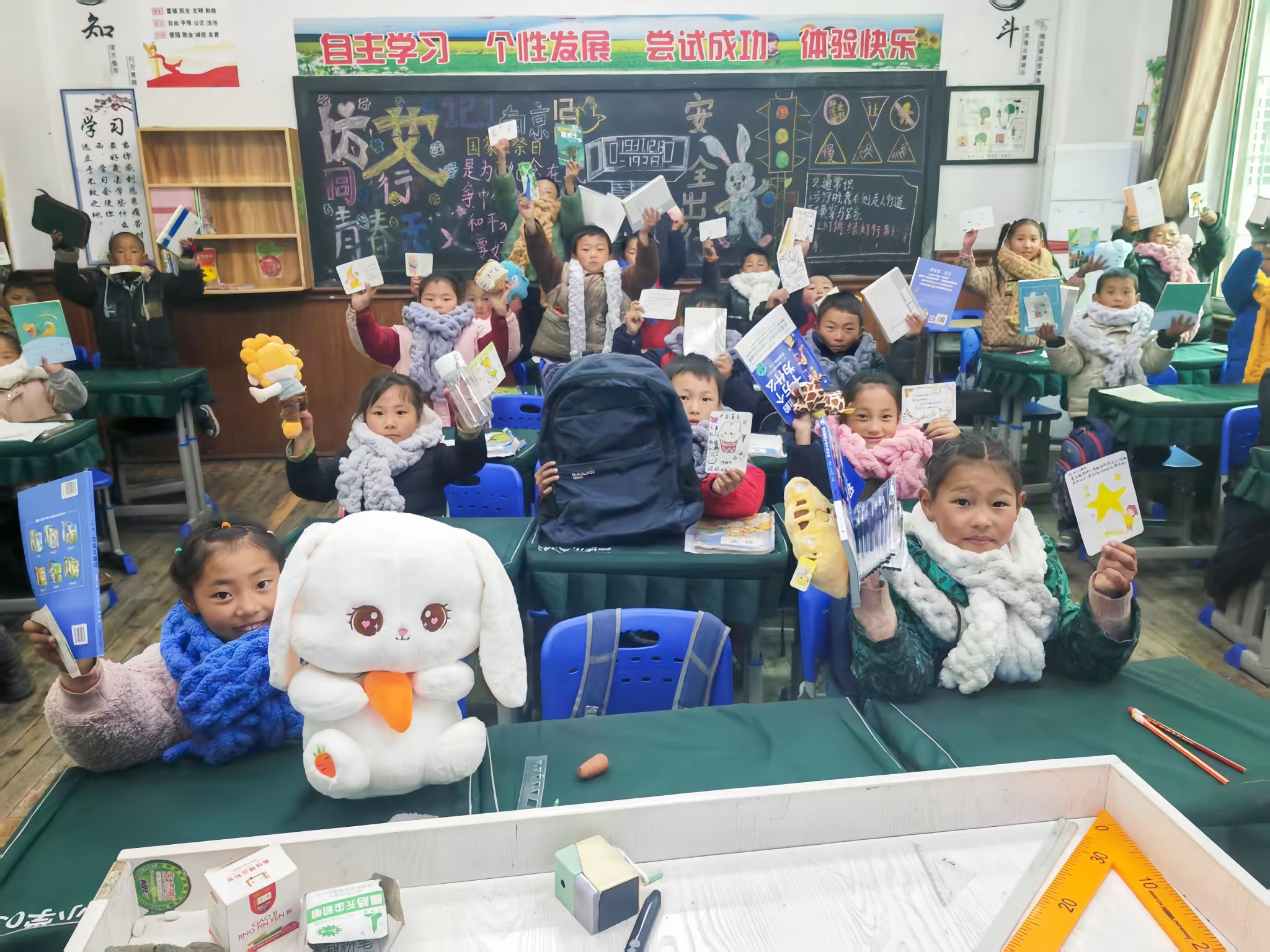 除了物资方面的捐赠外,更让人暖心的是数十封饱含真情的手写信。江服学子以笔为媒,用亲切易懂的文字与高原小朋友分享校园里的趣事、有趣的学习小技巧,描绘外面世界的精彩,鼓励他们好好读书、追逐梦想。“听说你们那里有湛蓝的天空和洁白的雪山,我特别向往,希望这条围巾能陪你度过寒冷的冬天”“愿你像小树苗一样茁壮成长,将来去看看更广阔的世界……”质朴的话语、纯真的祝福,字里行间满是“大哥哥大姐姐”对小朋友的殷切关怀与美好期许。