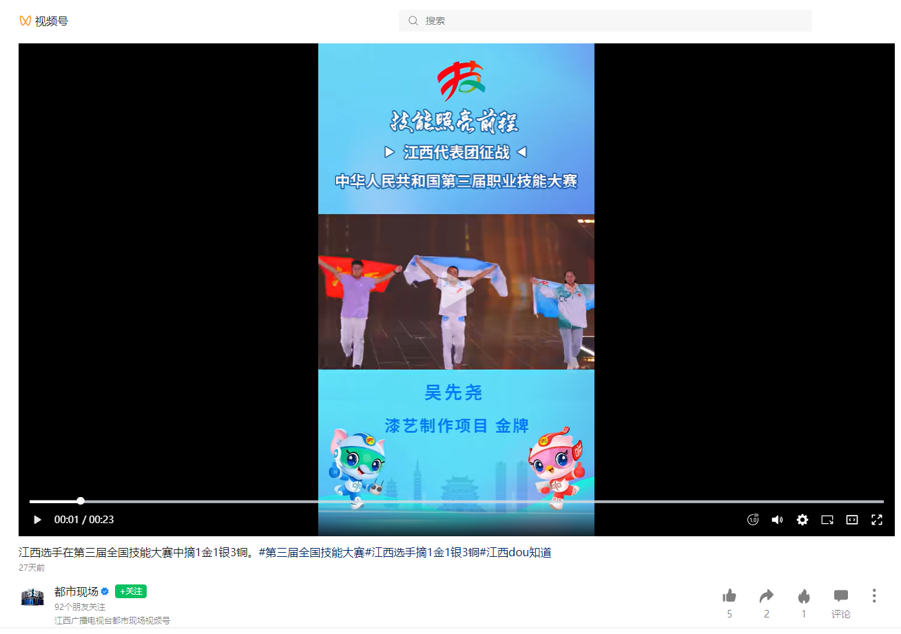 9月23日,中华人民共和国第三届职业技能大赛圆满落下帷幕,江西服装学院艺术设计学院教师吴先尧夺得漆艺制作项目金牌,为江西在职业技能领域赢得了荣誉。