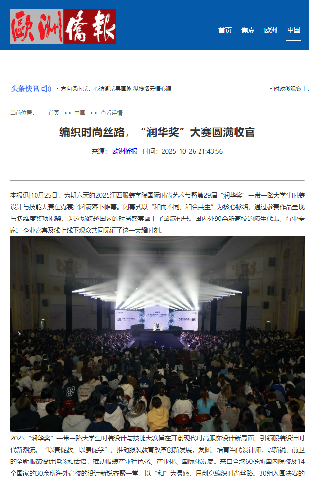 欧洲侨报:编织时尚丝路,“润华奖”大赛圆满收官