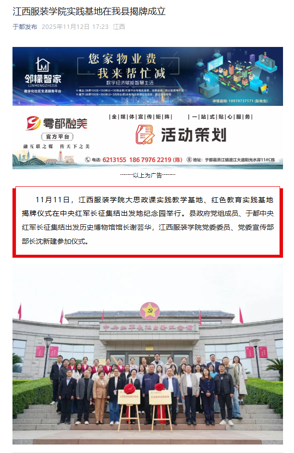 于都发布:江西服装学院实践基地在我县揭牌成立