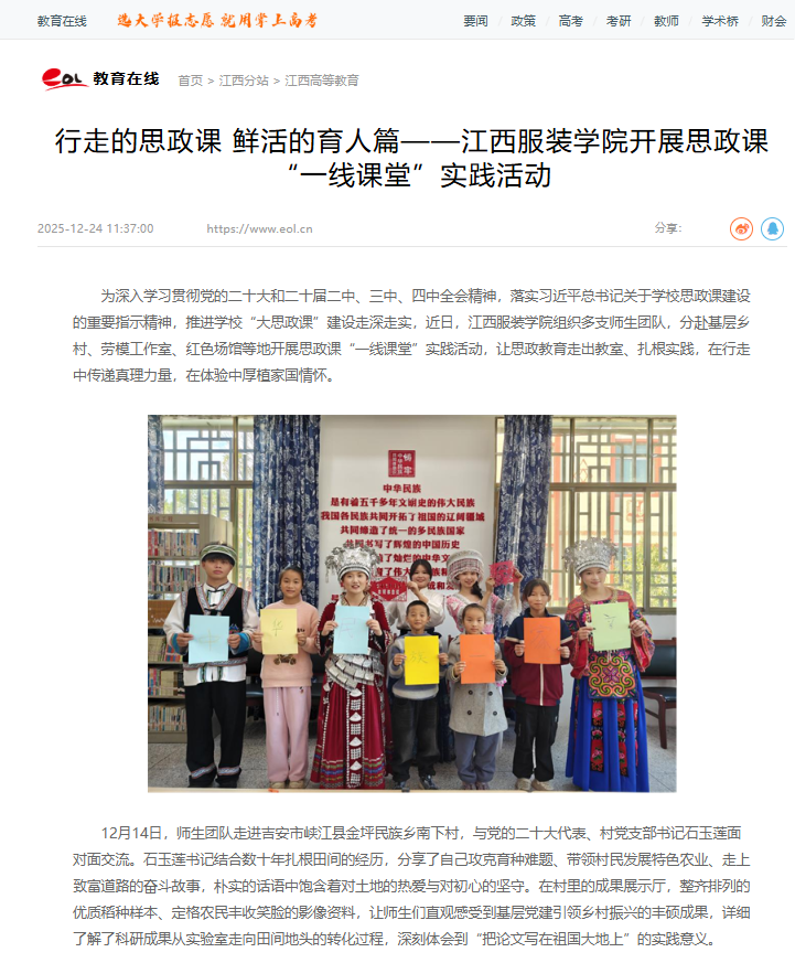 中国教育在线:行走的思政课 鲜活的育人篇——江西服装学院开展思政课“一线课堂”实践活动