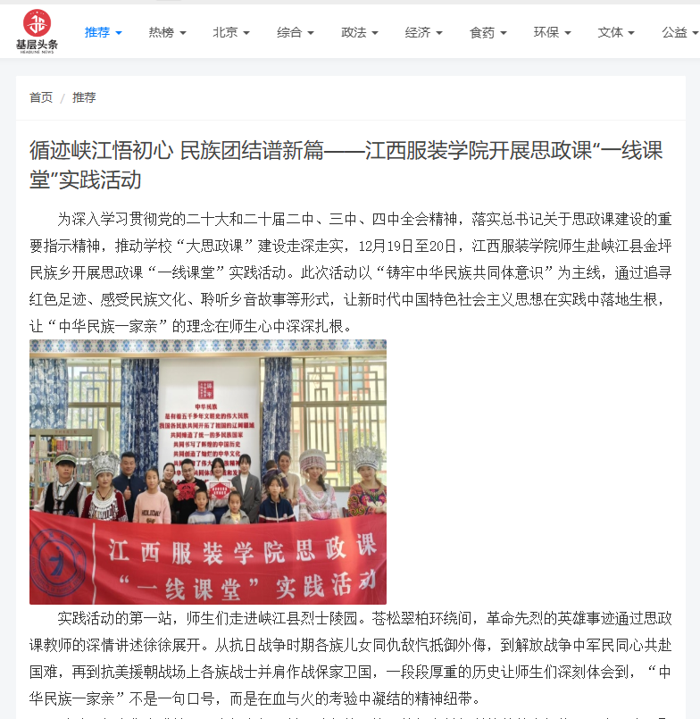 基层头条:循迹峡江悟初心 民族团结谱新篇——江西服装学院开展思政课“一线课堂”实践活动