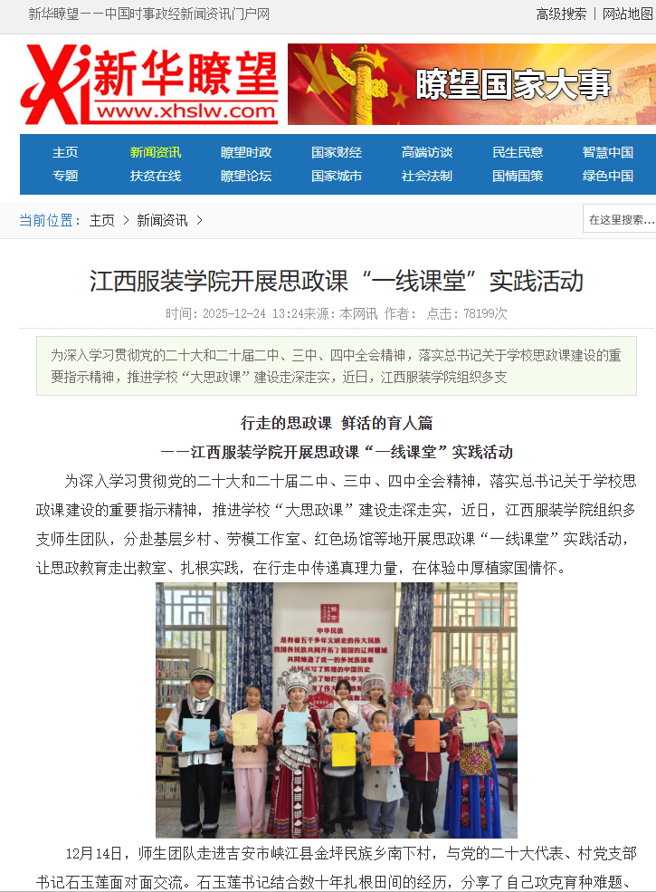 新华瞭望:行走的思政课 鲜活的育人篇——江西服装学院开展思政课“一线课堂”实践活动