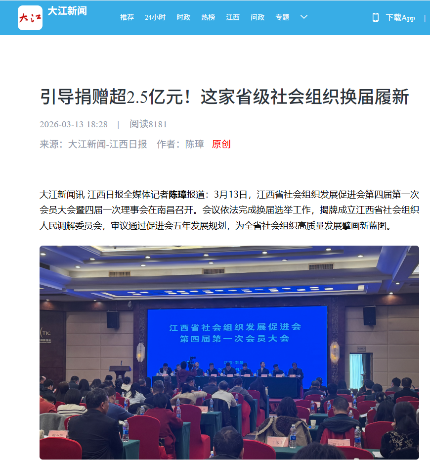 大江新闻:引导捐赠超2.5亿元!这家省级社会组织换届履新