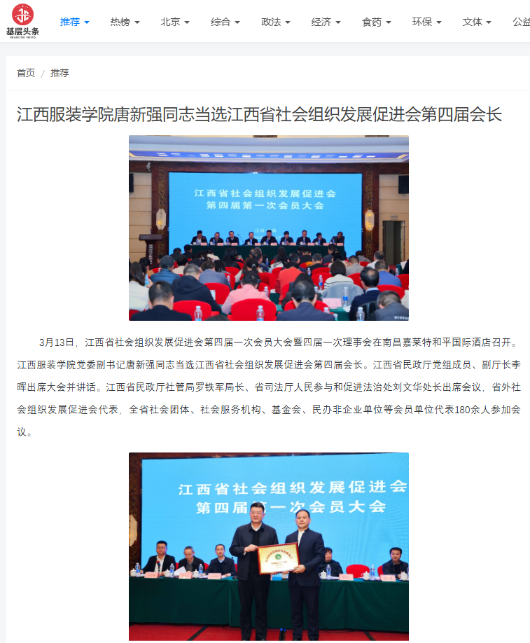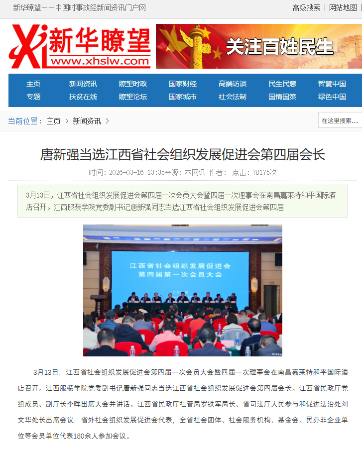 中国新闻网:江西省社会组织发展促进会完成换届 唐新强当选第四届... 2026-03-14