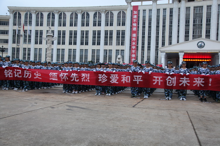 为纪念中国人民抗日战争暨世界反法西斯战争胜利70周年,引导广大师生铭记历史、缅怀先烈、珍爱和平、开创未来,传承弘扬伟大的抗战精神,9月3日清晨,我校在主教学楼广场隆重举行了纪念抗战胜利70周年升旗仪式。校党委副书记高建国,承训部队刘连长和全体教官,学校各分院(部)领导及2015级新生、新生班主任等4000余人参加了升旗仪式。校团委书记朱红主持了升旗仪式。