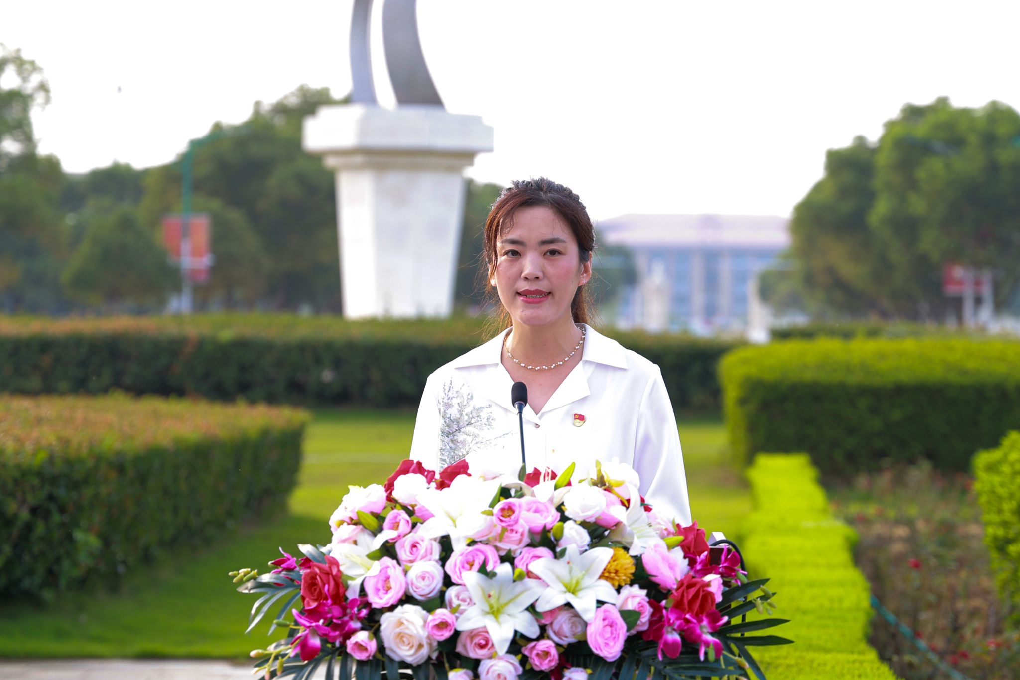 林井萍讲话指出,今年恰逢中国人民抗日战争暨世界反法西斯战争胜利80周年,80多年前革命先辈“以铮铮铁骨战强敌”,用热血换来了民族独立与和平,让当代青年得以安心读书、自由追梦;中华人民共和国成立76年来,祖国实现从“站起来”到“富起来”再到“强起来”的跨越,党的领导、国家统一、民族团结与人民奋斗,是战胜一切艰难险阻的根本力量。立足江西“中国革命的摇篮、人民军队的摇篮、共和国的摇篮”这一红色沃土,传承着井冈山精神、苏区精神、长征精神等诞生于江西红土地上的宝贵精神财富,我校近年来在各领域取得了突出成绩:连续十一年问鼎中国时装设计“新人奖”、连续数年获全省民办高校年检和综合考核第一名,2025年9月陈龙老师获中国时装设计“金顶奖”、吴先尧老师获全国职业技能大赛江西省唯一金牌,我校团委连续获评全省高校共青团工作先进单位、荣获全省五四红旗团委,前后3名同学获评中国大学生自强之星奖学金等,这些成果是江服人将家国情怀融入专业实践的生动体现。林井萍对江服青年提出三点希望:锚定内心热爱,点亮理想航标。以党的创新理论为指引,将个人兴趣与国家未来同频共振;练就硬核实力,解锁未来可能。探索创意、审美与智能制造、AI设计的融合,成为推动新质生产力发展的“青春引擎”;投身真实世界,让奋斗“落地成金”。在乡村振兴、绿色发展、非遗文化转化中践行爱国主义精神,书写无愧于心的青春答卷。