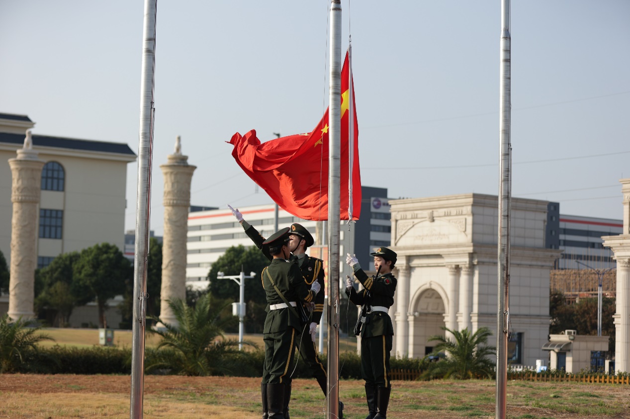 大会在庄严的升国旗仪式中拉开帷幕。伴随着雄壮的国歌声,五星红旗冉冉升起,全体人员肃立行注目礼,爱国情怀在现场每个人心中激荡。