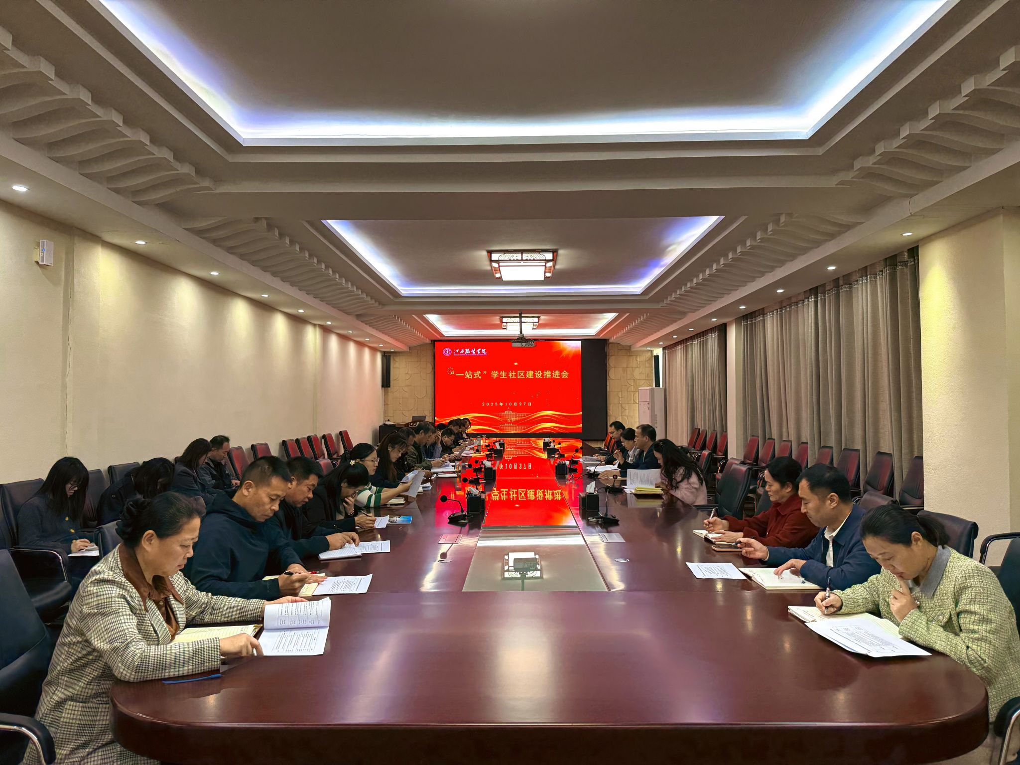 新闻中心讯(供稿/党委学生工作部)为落实教育部《高校“一站式”学生社区综合管理模式建设提质增效指南(2025修订版)》精神,系统总结我校阶段性建设成效,破解发展难题,全面推进《江西服装学院“一站式”学生社区提质增效建设实施方案》落地见效,10月27日,我校在行政楼二楼会议室召开“一站式”学生社区建设推进会。校党委书记林井萍出席会议并讲话,相关职能部门负责人、各二级学院党委(党总支)书记、副书记参加会议。会议由校党委副书记唐新强主持。