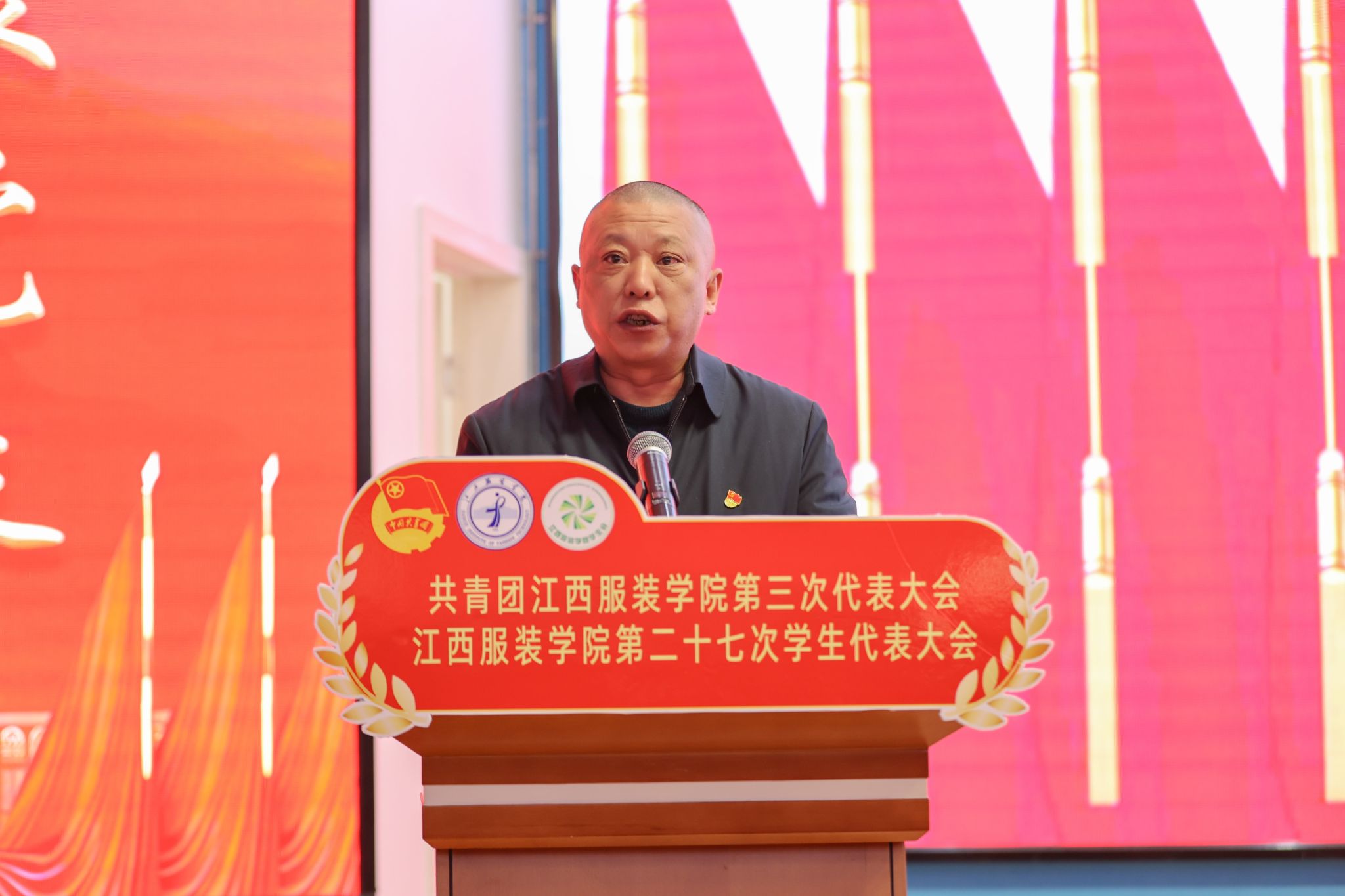 团南昌市委副书记万琪在讲话中向大会的召开致以热烈祝贺,她充分肯定了江西服装学院共青团在思想引领、实践育人、志愿服务和品牌打造等方面取得的亮眼成绩,充分展现了江服青年信念坚定、专业扎实、勇于担当的精神风貌。面向未来,她寄语江服青年:一要以信念为笔,绘就青春底色,要锤炼本领,让青春在与时代同向、与祖国同行中,绽放出鲜明的红色底色;二要以专业为墨,书写成才华章,在服务产业升级与文化传承中展现专业担当,努力成为既能坚守传统根脉、又能引领时尚潮流的专业人才;三要以实践为纸,担当时代使命,让青春在服务南昌发展、助力中国式现代化建设的生动实践中绽放光彩。她表示团市委将一如既往支持学校共青团工作,并希望新一届团委团结带领广大青年为谱写中国式现代化江西篇章贡献青春力量,并预祝大会圆满成功。