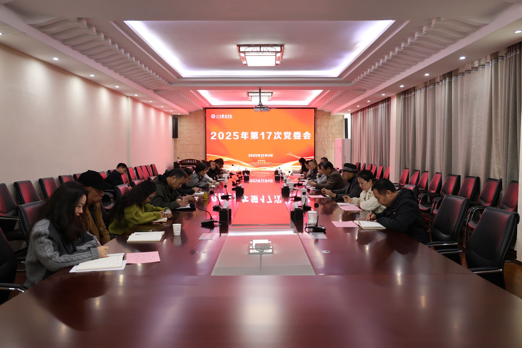 新闻中心讯(文/龙瑞行 图/徐志勇)12月4日,我校召开2025年第17次党委会专题学习会,传达学习习近平总书记近期重要讲话重要指示精神,研究我校贯彻落实意见。校党委书记林井萍主持会议。