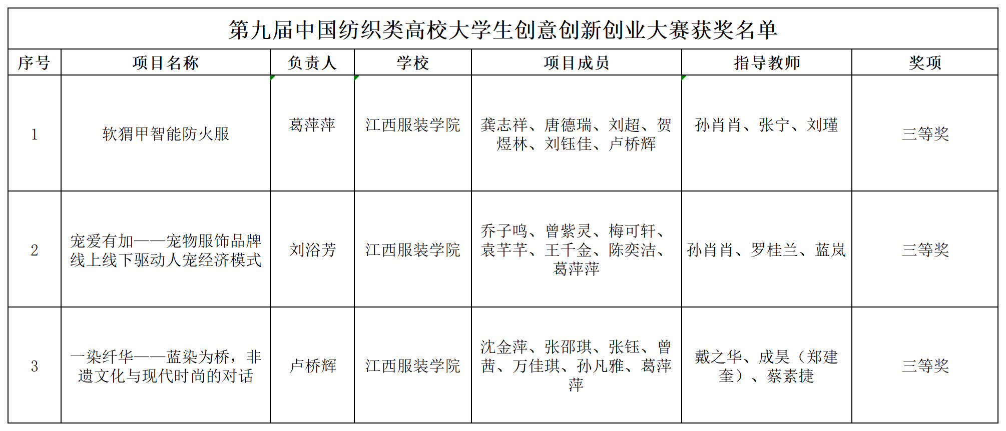 此次佳绩的取得,既是参赛学子创新思维、实践能力与团队协作精神的集中体现,更是学校长期深耕纺织服装特色教育、推进“产学研用”深度融合、强化双创人才培养的必然结果。近年来,学校始终坚持以学生成长为中心,不断完善双创教育体系,搭建高质量双创实践平台,通过课程改革、赛事驱动、校企合作等多种方式,持续激发学子的创新潜能与创业热情。未来,学校将继续坚守纺织服装特色办学定位,聚力赋能双创教育升级,进一步深化“产学研用”协同创新,着力培养更多兼具家国情怀、创新精神与实践能力的高素质人才,为纺织服装行业高质量发展注入源源不断的“江服力量”。