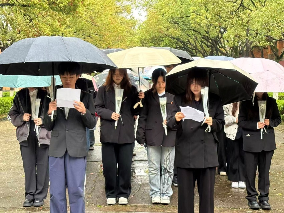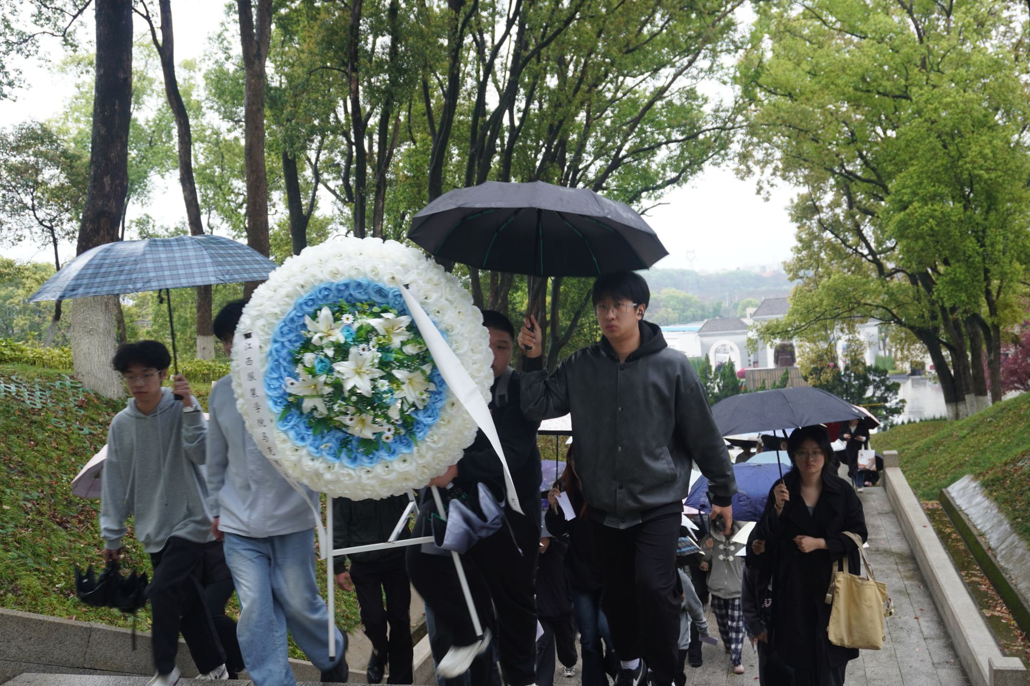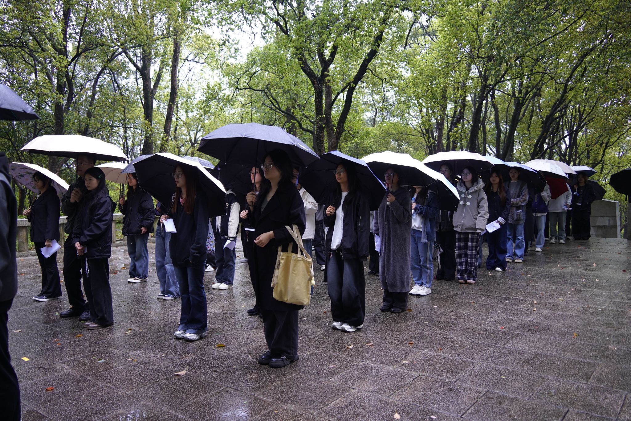 马克思主义学院组织思政课教师及各专业学生代表,前往方志敏烈士陵园开展“清明忆英烈 初心永传承”思政课实践教学活动。途中,思政课教师向同学们生动讲述了方志敏同志的革命事迹、精神内涵以及烈士陵园的历史背景,明确活动要求与学习目标。抵达陵园后,尽管大雨滂沱,师生们依然打着雨伞整齐列队举行缅怀仪式,向方志敏烈士敬献花圈,默哀鞠躬,表达深切追思与崇高敬意。随后,思政课教师开展现场教学,结合方志敏烈士的革命历程,深入解读革命精神、爱国主义精神的时代内涵以及新时代青年的使命担当。全体师生齐声诵读方志敏同志的《可爱的中国》,在诵读中感受烈士对祖国深沉的爱与坚定的信仰。之后,师生们前往方志敏烈士事迹陈列馆,认真参观珍贵文物与史料,近距离瞻仰烈士手稿与遗物,深刻领会革命先辈坚定的信仰、清贫奉献的崇高精神和爱国为民的赤子情怀。此次活动将红色资源与课堂教学深度融合,创新了思政教育形式,让青年学生在沉浸式体验中接受精神洗礼。