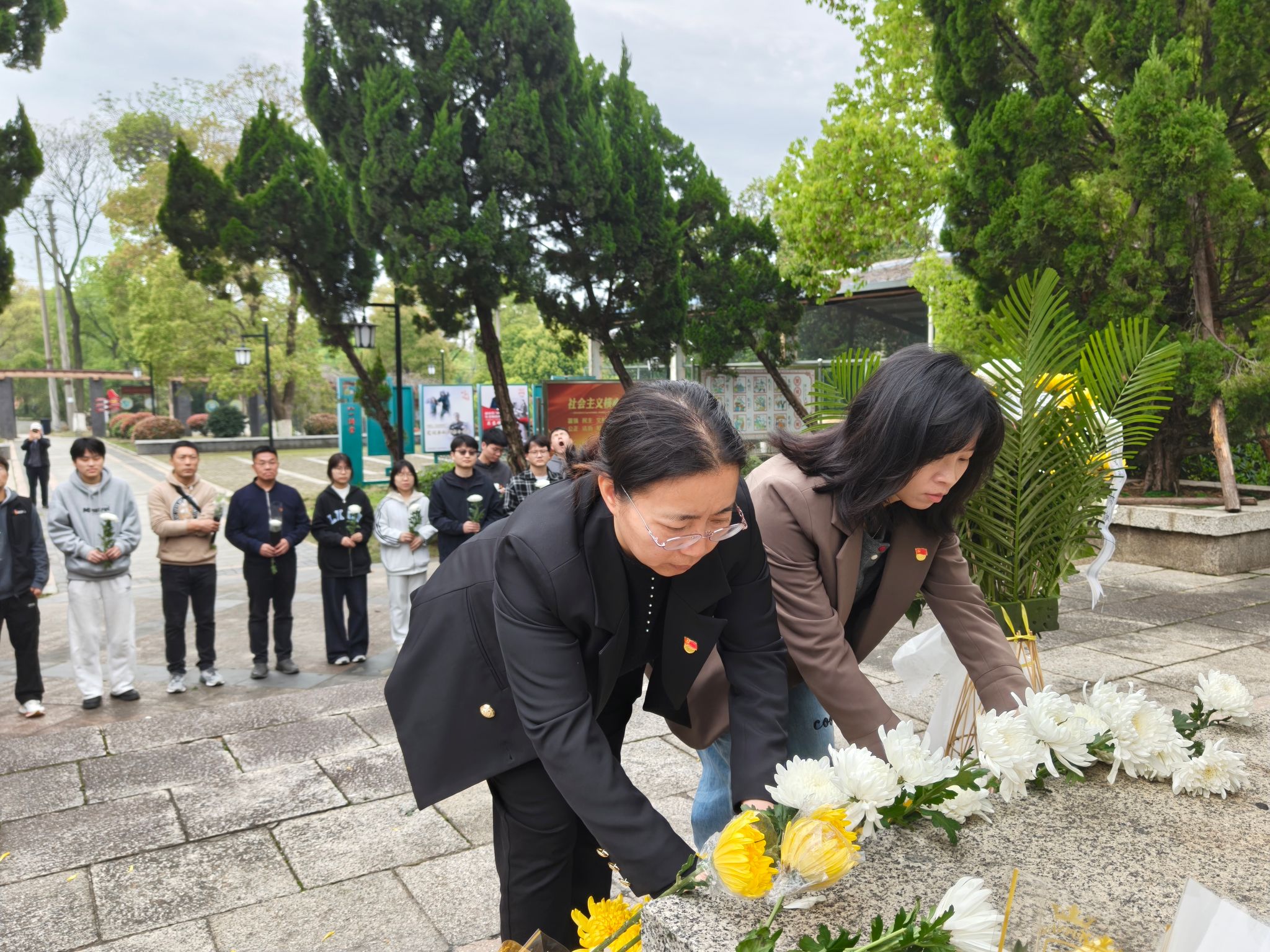 服装设计学院组织团员青年代表开展“缅怀先烈守初心 青春建功担使命”主题团日祭扫活动,全体团员青年整齐列队、肃立默哀、三鞠躬,依次敬献鲜花、瞻仰纪念碑,将爱国情怀与专业追求相结合;服装工程学院以“传承英烈精神,勇担青春使命”为主题,组织学生默哀致敬、敬献鲜花、诵读祭文,随后分组清理纪念碑周边环境、进行个人祭拜,用实际行动守护红色阵地;大数据学院开展“清明祭英烈,数智守初心”主题党日活动,师生党员列队肃立、敬献白菊,面向党旗重温入党誓词,以铮铮誓言践行党员担当,三个学院以统一的行动、多样的形式,共同致敬革命英烈、传承红色精神。