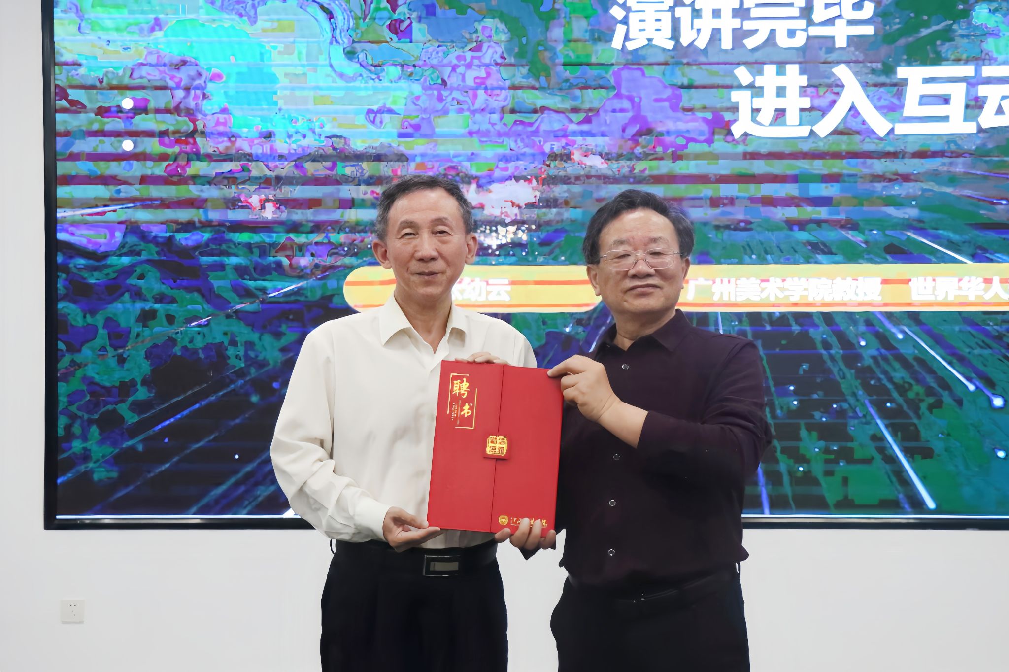 讲座尾声,尚钢为张幼云颁发客座教授聘书,并作感谢致辞。他深情回顾了与张幼云二十年来的深厚情谊与学术缘分,并对张教授在古稀之年仍亲临我校传道授业,为师生带来AI与艺术教育融合的前沿思想表示由衷的敬意。尚钢指出,人工智能在成果呈现方面具备显著优势,而艺术与设计教育的核心,在于引导学生理解专业原理、把握创作过程、提升综合素养,这正是教师不可替代的育人价值。他勉励全体教师以此次讲座为契机,拓宽认知格局、积极拥抱技术变革,争做AI时代艺术设计教育的先行者与开拓者,以更高站位、更实举措推动学校艺术教育事业高质量发展。