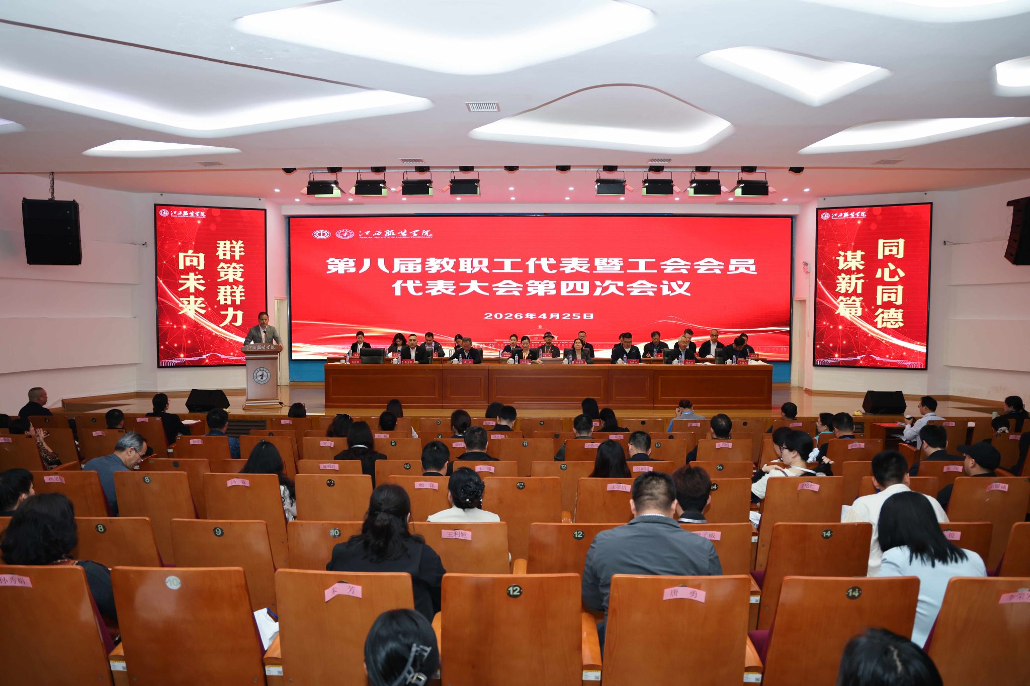 新闻中心讯 春风浩荡启新程,凝心聚力向未来。2026年4月24日至25日,江西服装学院第八届教职工代表暨工会会员代表大会第四次会议(以下简称八届四次“双代会”)在思贤楼报告厅召开。本次大会是学校“十五五”规划开局、建校35周年、申硕攻坚决战、抢抓“双优”工程机遇关键节点召开的一次全局性、战略性、民主性盛会。理事长涂燕萍,党委书记、督导专员林井萍,执行校长尚钢等全体校领导出席大会,正式代表、列席代表共200余人齐聚一堂,共商发展大计、共绘奋进蓝图,为加快建设特色鲜明的高水平应用型大学、打造“幸福江服”凝聚磅礴力量。