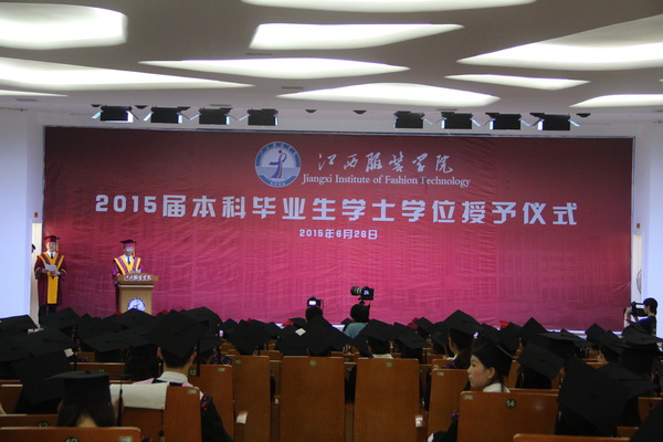 学通社讯(朱雨春/文 万强 朱雨春 左正鹏/摄影) 6月26日的江服校园,处处是成长的味道。我校首届本科毕业生带着半年的实习收获和激动的心情,今天回到母校接受学业生涯中最神圣的学士学位授予仪式,这既是一个收获和喜悦的时刻,也是一个庄严和充满希望的时刻。上午8点30分,江西服装学院院长陈万龙博士、学术委员会主任温容祯教授、党委副书记温诒忠教授、总督学杨汉东副教授,学校学位评定委员会全体委员和毕业班班主任、相关指导老师,2015届获学位毕业生齐聚思贤楼报告厅,参加江西服装学院2015届本科生学士学位授予仪式。
