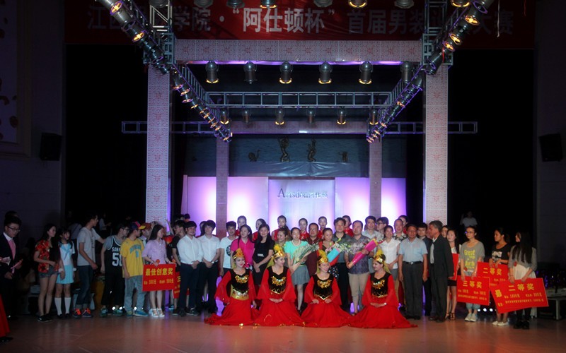 学通社讯 6月9日晚,我校首届“阿仕顿”男装服装设计大赛在霓裳宫圆满落幕。学校副理事长涂顺强、党委副书记高建国、副校长胡放、总督学杨汉东与阿仕顿公司的高管及3000名师生齐聚霓裳宫观赏了比赛。最终,来自服装工程分院的2012级服工本科实验1班冯登霞同学的作品《器宇轩昂》荣获金奖。