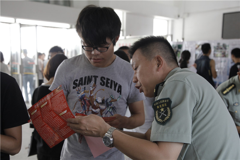 学通社讯: 6月12日中午,为响应国家征兵号召,让更多的大学生了解征兵政策,鼓励更多高素质青年参军,南昌县武装部、我校军事理论教研室在主教学楼A座大厅开展征兵宣传活动。当天现场气氛火热,同学们积极咨询服兵役的相关问题,表现出了很高的参与热情。