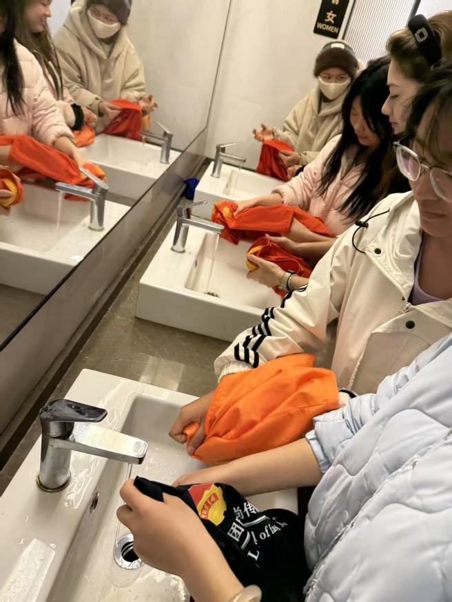 时尚传媒学院的志愿者们在艺术楼开展清洗志愿服装活动,大家分工协作、认真细致,让一件件志愿服装焕然一新,在阳光下成为一道亮丽的青春风景线。