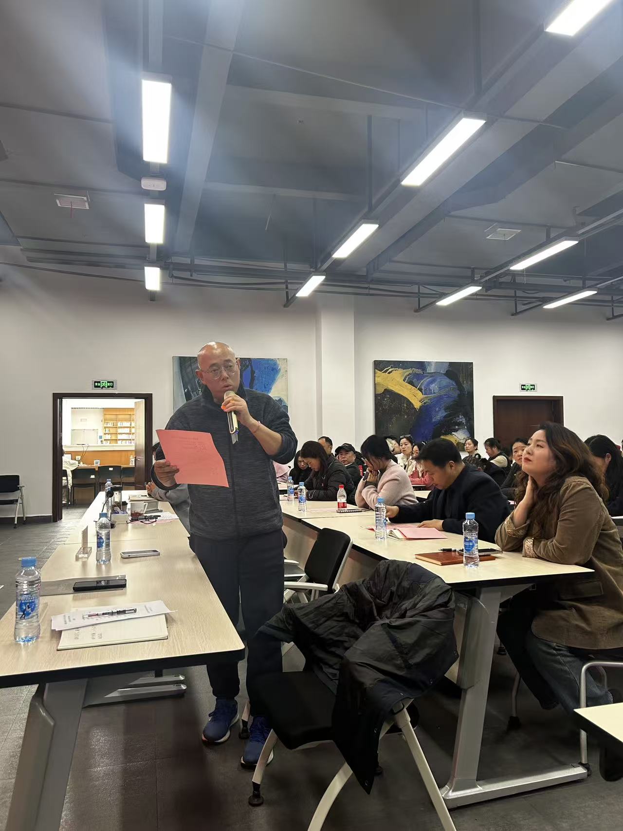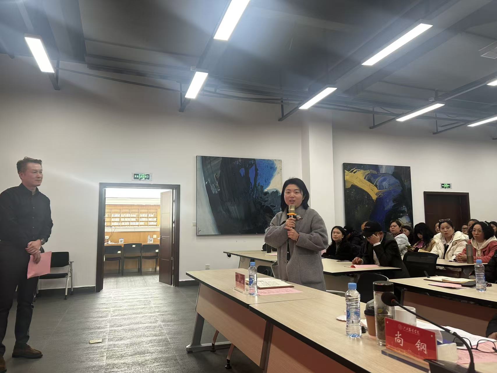 分享会伊始,主持人张宁院长发表热情洋溢的致辞,向莅临现场的尚钢校长及全体参会教师表示热烈欢迎和衷心感谢。他详细阐释了“锦绣文心”的深刻内涵:“锦绣”承载着中华传统服饰的千年匠心,是一针一线的工艺美学,更是服装设计的本源载体;“文心”蕴含着以书润心、以文化人的教育初心,是通过阅读沉淀底蕴、以文化赋能设计的精神内核。张宁院长表示,本次分享会紧扣服饰色彩美学、传统服饰文化传承与教研创新两大核心,旨在以书籍为纽带,让经典著作照亮教学之路,让文化底蕴滋养设计初心,助力全体教师碰撞思想火花、凝聚教研共识。