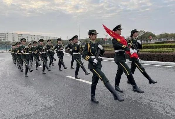伴随着激昂热烈的国歌,旗手振臂一挥,鲜艳的五星红旗在空中飘扬,全体师生庄严地看着五星红旗冉冉升起。师生高唱着国歌,传递着自己对祖国的热爱与敬意。