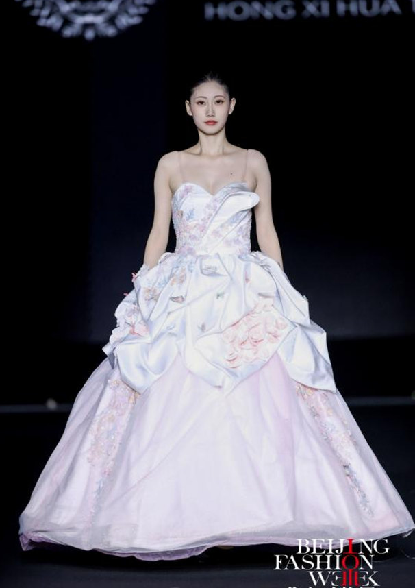 新闻中心讯(来源/纺织服装周刊)2026年3月19日,AW2026北京时装周与丝绸之路国际时装周“双周联袂·丝路京彩”系列活动在北京·正大中心璀璨启幕。江西服装学院大学生创业品牌 “红熹花田” 携婚纱礼服新品系列惊艳亮相,以诗意花田为设计意象,通过东方审美与当代婚纱结构的融合表达,呈现出一场兼具浪漫气质与艺术张力的婚纱礼服发布会,赢得现场嘉宾与业内人士的高度关注。
