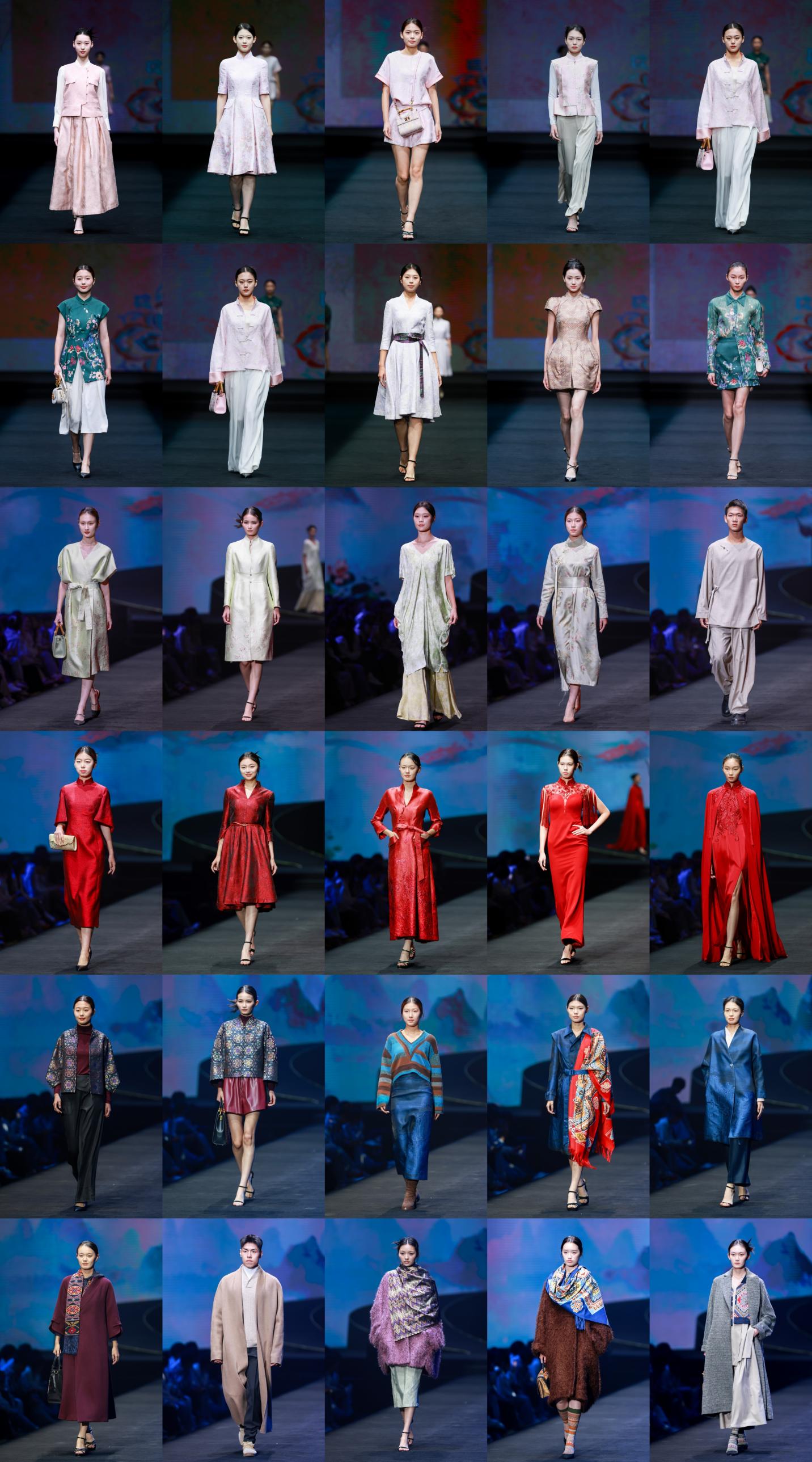 本次发布会以“归来”为主题,通过《初心·立春》《探索·夏竹》《繁华·秋华》《归真·冬藏》四个篇章层层递进,集中展示了60套清君华服精品力作,系统呈现了任清君校友26年设计生涯的演进脉络与精神沉淀。