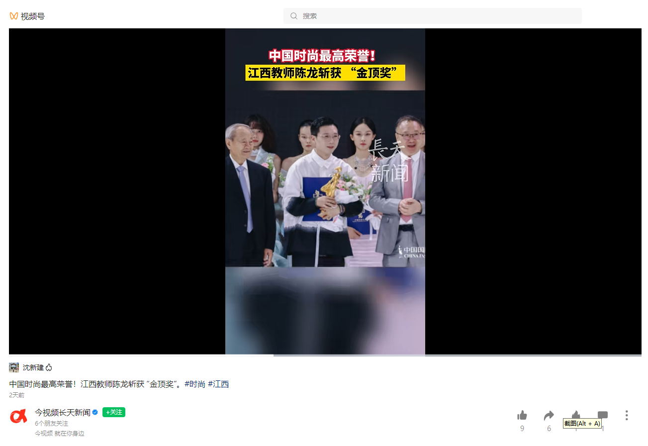9月14日,在北京举行的“惠安时尚之夜”2025中国国际时装周颁奖典礼上,江西服装学院教师陈龙摘得第29届中国时装设计最高奖——“金顶奖”,成为中国时装设计界本届最受瞩目的设计师。这一奖项代表中国时装设计领域的最高荣誉,充分肯定了陈龙在时尚创意与设计实践中的卓越成就。