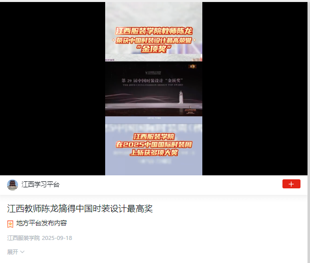 学习强国:江西教师陈龙摘得中国时装设计最高奖