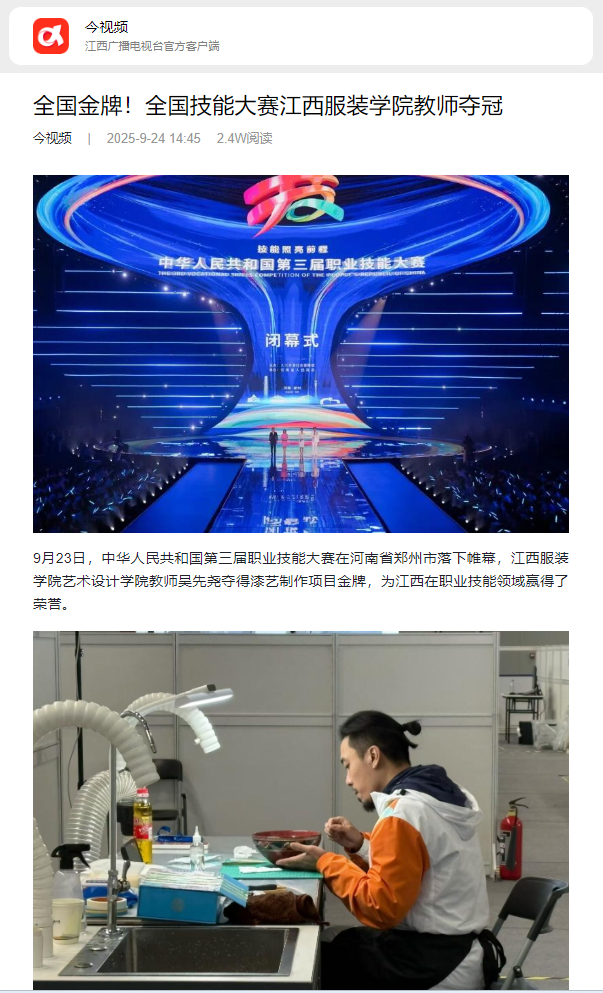 江西网络广播电视台·今视频:全国金牌!全国技能大赛江西服装学院教师夺冠