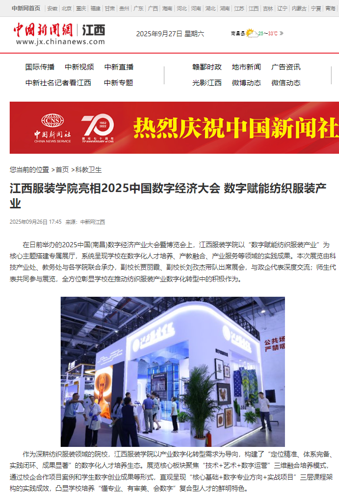 中国新闻网:江西服装学院亮相2025中国数字经济大会 数字赋能纺织服装产业