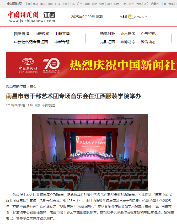 中国新闻网:南昌市老干部艺术团专场音乐会在江西服装学院举办