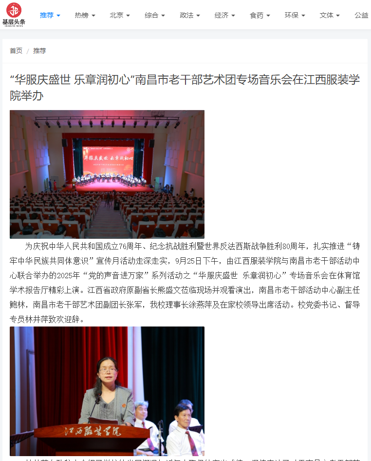 基层头条:“华服庆盛世 乐章润初心”南昌市老干部艺术团专场音乐会在江西服装学院举办