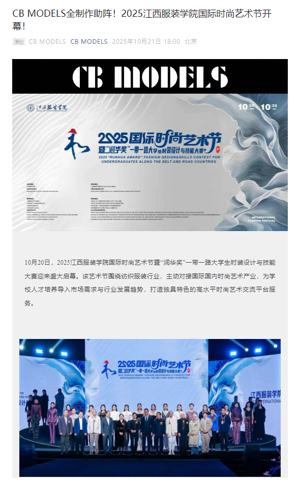 CB MODELS:CB MODELS全制作助阵!2025江西服装学院国际时尚艺术节开幕!