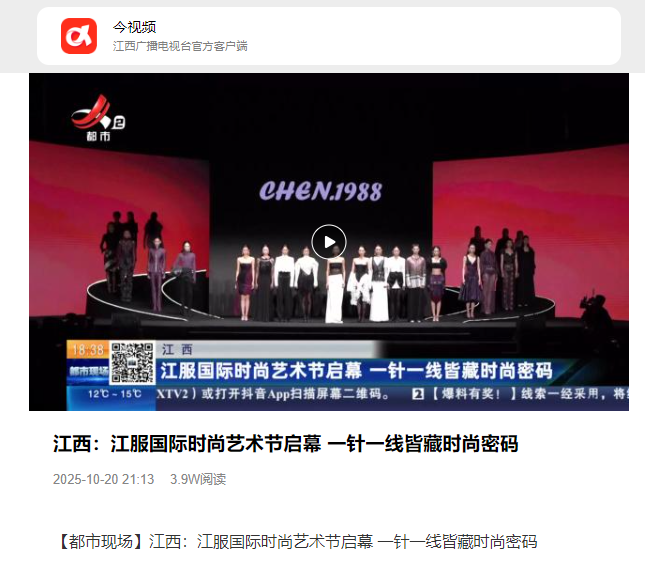 原文链接:江西广播电视台·今视频:江西:江服国际时尚艺术节启幕 一针一线皆藏时尚密码