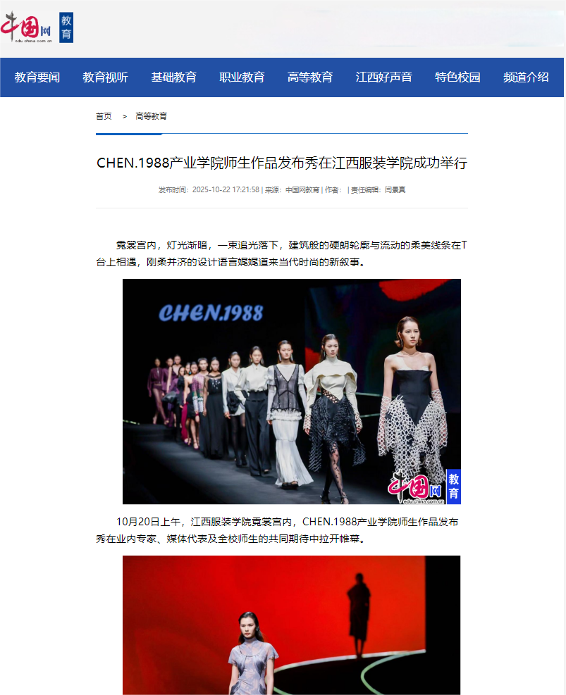 中国网:CHEN.1988产业学院师生作品发布秀在江西服装学院成功举行
